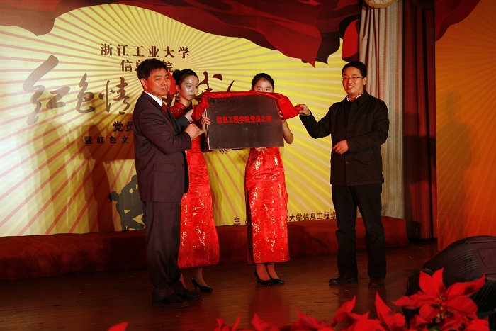 ![]() 校组织部副部长於建明和学院党委书记杨东勇共同为信息学院“党员之家”揭牌