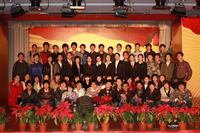![]() 学院学生工作线老师和参与晚会筹备学生合影 |