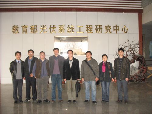 在合肥工业大学电气与自动化学院副院长张兴教授的带领下,一行人参观了相关实验室,张兴教授介绍了该院在新能源发电研究方面的基本情况。该院建有总容量30KWp的光伏阵列,阵列中专门配置了多种类型太阳电池,所内还建有全自动气象站,研究太阳辐射、风向、风速、环境温度、电池结温等对光伏发电和优化设计的影响,在成功运作光伏发电产学研发展模式的基础上,他们还建立了燃料电池发电并网子系统、超级电容蓄能发电并网子系统、多线路柔性组合高压输电网络模拟子系统、模拟风力发电并网系统实验等当前具有良好发展前景的新能源实验平台。目前,该院已经与阳光电源、无锡尚德、北京京合绿能电子等新能源设备制造企业建立了长期、良好的合作关系,每年不仅有大量科研经费,而且通过跟实际工程密切结合的教学科研锻炼,该院毕业生都是各大企业争夺的香饽饽。