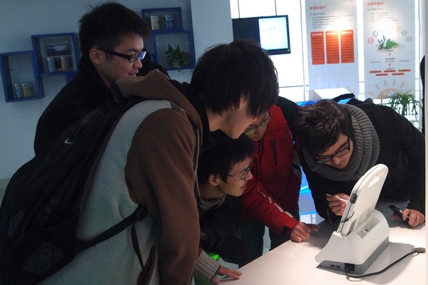 会后,走访团一行人参观了银江科技集团的企业园区和各个展区。在智能医疗展示区,同学们饶有兴趣地对智能医疗板进行了操作;在智能交通展示区,同学们了解到了银江开发的产品如何在杭州市的快速公交等智能化交通领域发挥巨大的作用。通过参观,学生更清晰地认识了就业的形势和要求,感受了优秀企业的企业文化和良好的工作氛围,了解了专业和科技发展的前沿,从而更好地激发了学生学习的主动性。