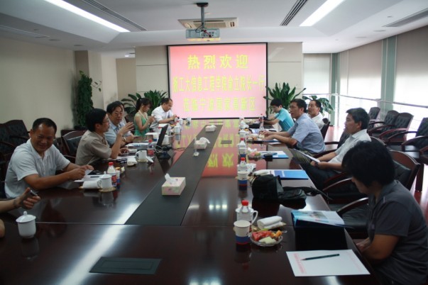 在宁波国家高新区,学院领导在学校宁波校友会负责人、宁波高新区管委会副主任任君达的陪同介绍下参观了高新区展示大厅,并与高新区负责人进行了座谈交流,双方就工程中心、创新平台建立等进行了探讨。
