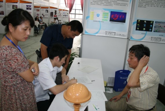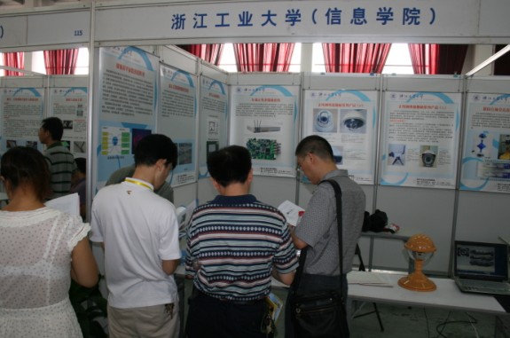 9月16日,2010中国·衢州第八届工业科企合作洽谈会在衢州市东方会展中心举行。我院汤一平教授和办公室有关负责人随学校科技处组团参加。此次学院共有无线网络摄像机等12项成果参加展示,全方位视觉传感器作为实物进行演示,引起了现场广泛的关注。洽谈会上,汤教授代表学院与参会企业开展了科技合作项目洽谈,与浙江中数科技有限公司、浙江威龙文迅电子有限公司和浙江创亿科技有限公司3家企业就全景视频图像获取、视频获取技术及智能分析技术、无线网络摄像技术、单片机应用系统开发等达成了初步合作意向,并签订了合作意向书。