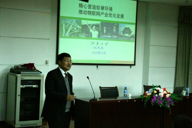 12月10日,江南大学纪志成教授应邀为全校师生作了“精心营造软硬环境,推动物联网产业优化发展”的讲座。 在讲座中,纪志成教授从粮仓的温度、湿度监测技术切入,深入浅出地介绍了物联网相关的无线通信、智能控制、信息融合、数据挖掘等各类主导技术,并从宏观上阐述了物联网的发展背景与意义,介绍了我们国家在物联网建设领域的产业布局与发展规划。最后,以江南大学为例展望了在物联网技术的驱动下,今后大学校园生活的美好蓝图。 纪志成现任江南大学副校长,教授,博士生导师,兼任中国自动化学会控制理论专业委员会委员、中国自动化学会应用专业委员会委员、中国系统仿真学会理事、江苏省自动化学会常务理事等职。主持省部级以上科研项目10项,获江苏省教学成果奖一等奖2项,中国轻工业联合会科技成果二等奖1项。发表论文100余篇,其中被SCI、EI收录60余篇。 自物联网上升为国家战略以来,信息学院加快物联网产业相关技术的布局,陆续邀请国内在该研究领域的权威专家学者来校开展学术交流活动,并依托信息处理与自动化技术重中之重学科,成立了浙江工业大学物联网工程研发中心,有效对接国家与浙江省主导产业的发展。
