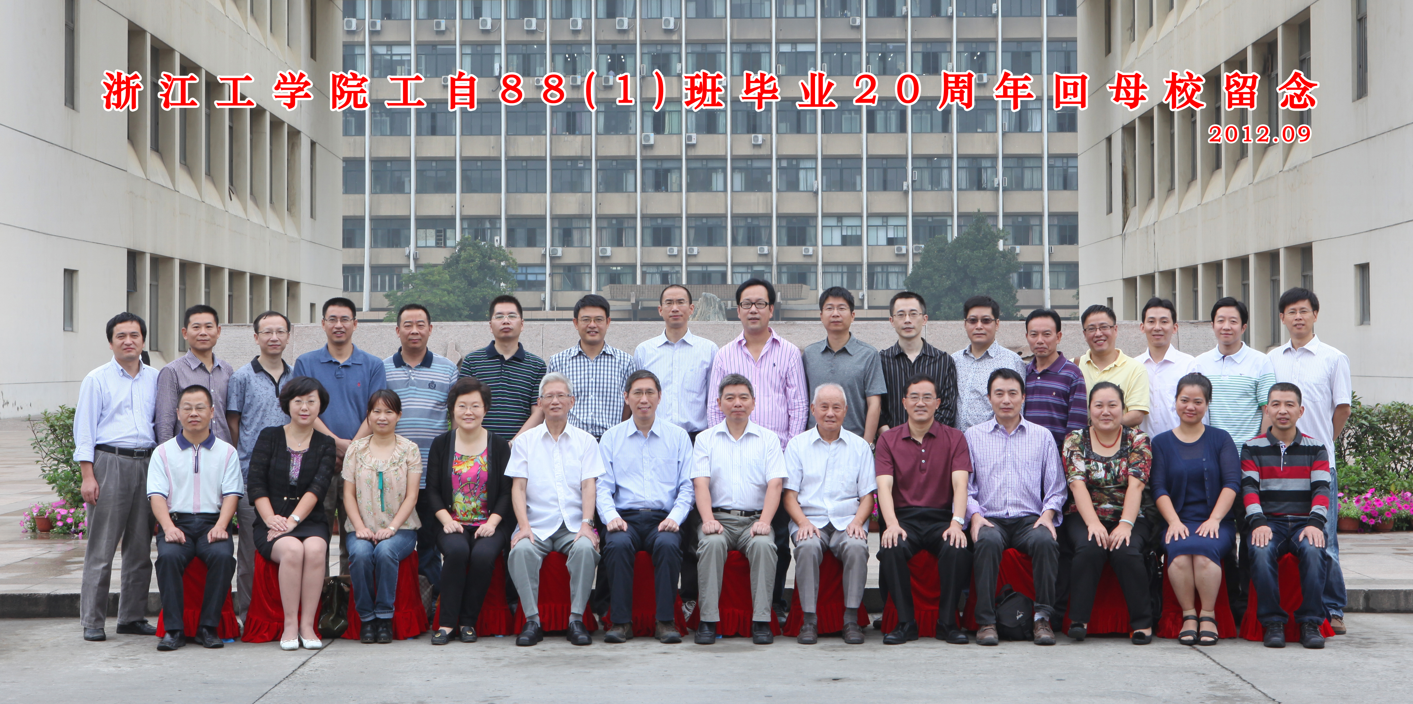 2012年9月22日,我院工自88(1)班校友相聚母校,庆祝毕业20周年。信息工程学院院长俞立、信息工程学院党委书记杨东勇以及当年的任课老师和辅导员参加了活动并与校友们在学校大门前合影留念。 上午,校友们参观了校园,大家在拓工桥旁飞翔雕塑前和曾经上课的存中楼及居住过宿舍楼内驻足,回忆起当年在母校求学的美好时光,大家仿佛回到了美好的学生时代。在感慨时光飞逝,岁月变迁的同时,更感叹母校发生的巨大变化。校友们纷纷表示,今后要常回母校看看,加快同学聚会频率,相约明年校庆60周年时再相会,再叙同窗情,母校情。 |