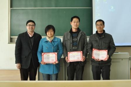 方路平副院长为学院建设贡献奖(集体)颁奖 杨东勇书记为优秀教师(先进工作者颁奖) 孙航副书记为学院建设贡献奖(个人)颁奖 周晓副院长为教学工作先进个人颁奖 梁荣华副院长为科研工作先进个人颁奖