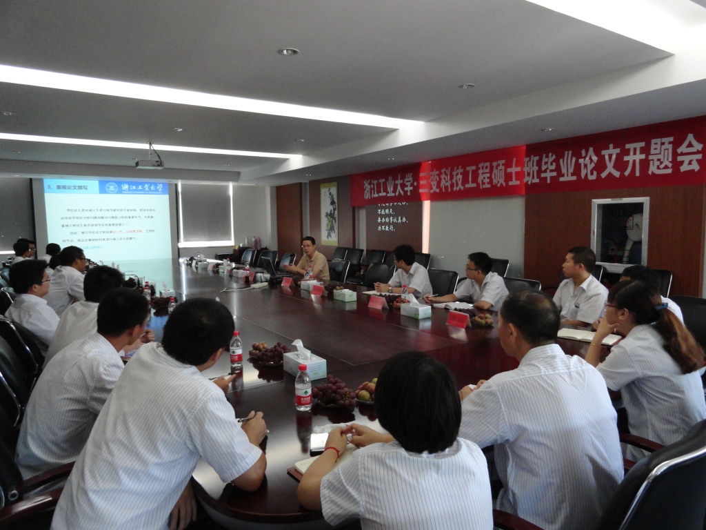 2013年7月26-27日,学院组织工程硕士导师共9人,在学院副院长方路平教授的带领下,顶着40多度烈日酷暑,远赴台州市三门县三变科技集团工程硕士校外教学点进行教学点考察、开题讲座以及论文选题指导等工作。