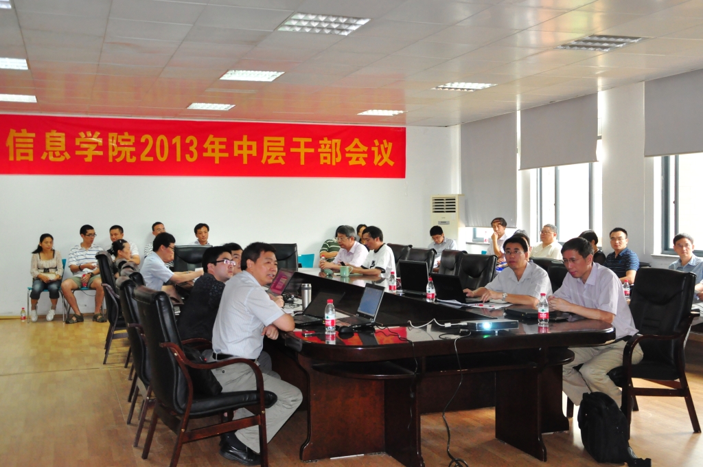 9月5日,学院召开2013年度暑期中层干部会议。会议在学校 “推进创新驱动发展战略、提升解决重大问题能力,提高服务转型升级水平、加快建设区域特色鲜明的综合性研究性大学”的指导思想下,以 “理清现状,明确目标、推进创新驱动发展”为主题,围绕学院任期目标责任制中的各项指标及完成情况,认真交流、研讨今后的发展方向和工作重点。学院领导班子、中层干部、全体教授等40余人参加了会议。 会上,学院党委书记杨东勇首先向与会人员传达了学校暑期中层干部会议的有关精神,并重点介绍了学校人事工作的新政策及群众路线教育实践工作的部署。随后,学院各分管领导就学院目标责任制中各项指标的完成情况进行汇报,理清目前学院各项工作的现状,明确今后的工作重点和需要攻克的难点,并在此基础上规划未来的工作部署。 最后,学院院长