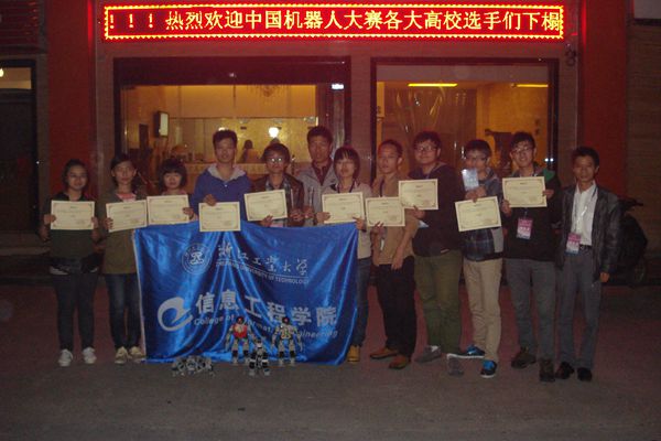比赛项目众多,时间紧凑,信息学院机器人团队表现出了良好的协作精神和顽强拼搏的坚韧斗志,不顾旅途劳顿,行李没放就直接赶赴赛场调试,第一轮比赛机器人出故障后,仍通宵调整硬件和程序,最后共获得国家一等奖四项(其中两项分别为该类别亚军和季军),二等奖三项,三等奖三项。
