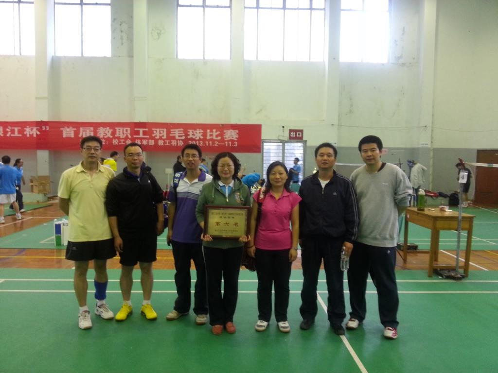 11月2日~3日,“银江杯”首届教职工羽毛球比赛在朝晖校区体育馆举行。经过全体队员的奋勇拼博,取得全校第六名的好成绩。