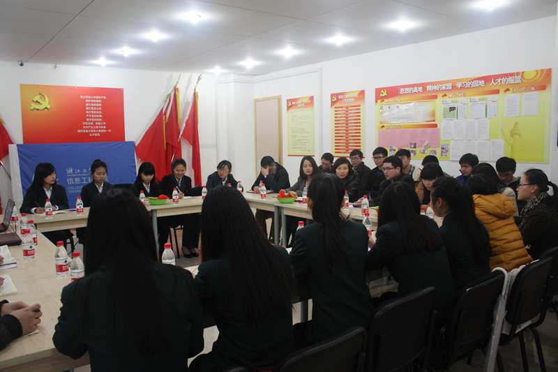 交流会上,孙书记介绍了我院科技创新的工作体系、学生党员作用发挥机制、新生启航计划、学生困难资助体系等特色工作,我院团学会代表就“e之蓝”团学文化品牌、团学组织体系、精品活动等一一作了介绍,并展示了我院团学会的宣传视频。会上,毛书记介绍了旅游职业学院的特色工作与亮点,同时对我院课外科技创新工作成果表示高度肯定,也对“e之蓝”微信公众平台建设表达了浓厚的兴趣。此外,双方还就学生日常管理、团学组织建设、文明寝室建设等方面的问题展开了探讨,双方学生骨干也开展了对口交流,进一步促进双方学生工作。