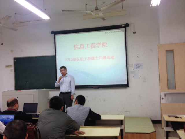 2015年10月24日周六上午,学院组织工程硕士导师共14人,在广B104开展了13级在职工程硕士(校内班)开题讲座以及论文选题指导等工作。