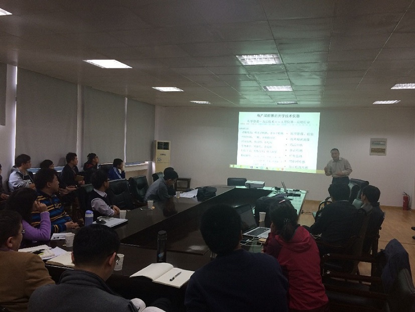 何永红教授从光学技术仪器的广阔前景出发,深入浅出地为我院师生介绍了光学仪器设计的基本科学原理和具体应用领域。针对生物医学需求,在原位组织水平,何教授详细分析了其设计的非接触、无损、高分辨率光学相干层析成像(OCT)以及新的差分吸收和多普勒OCT系统,能够用于测量血氧饱和度和血液流速信息;从离体体液、细胞和分子水平出发,介绍了自主开发的高通量、大线性范围和高灵敏度检测的表面等离子体共振分析(SPR)系统,未来可以将其应用于DNA生物大分子测量和荧光成像中。报告结束后,与会师生进行了热烈的讨论。
