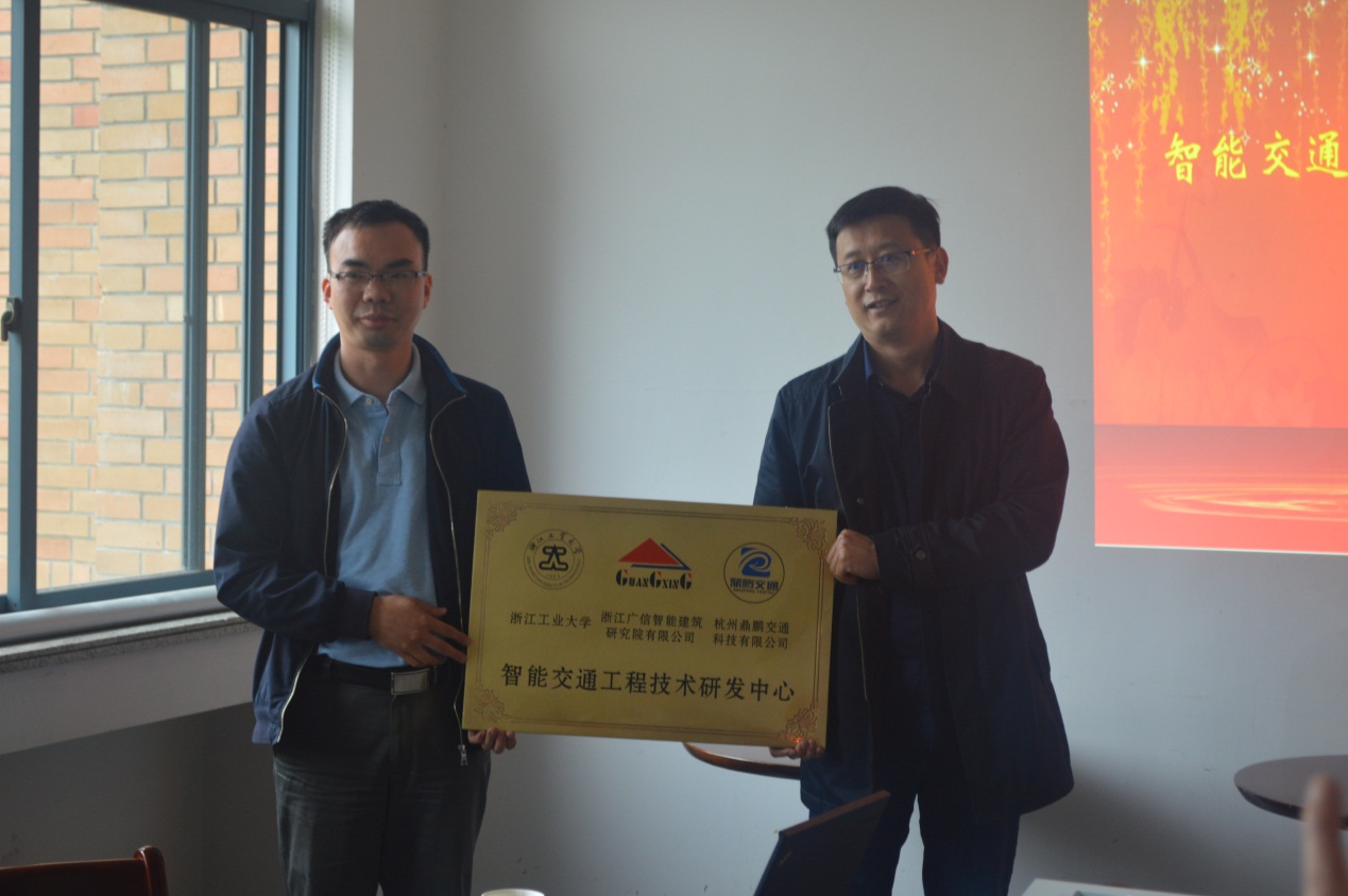 4月26日下午,由浙江工业大学、浙江广信智能、杭州鼎鹏联合组成的智能交通工程技术研发中心的成立仪式在广C616举行。该研发中心集聚和整合了浙江工业大学信息工程学院、浙江广信智能建筑研究院、杭州鼎鹏交通科技有限公司在道路交通领域研究方面的优势力量,主要研究方向包括:道路交通大数据的分析处理平台构建、基于数据驱动的交通信号配时、基于道路交通大数据的交通评价等。