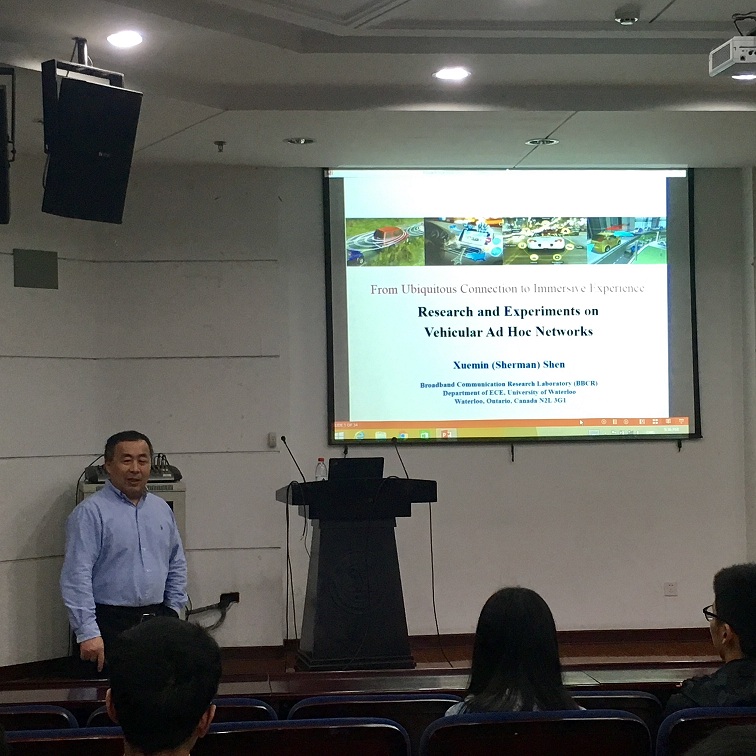 5月8日,加拿大滑铁卢大学电子与计算机工程学系沈学民院士应邀请来我院进行学术访问,并作了题为“From Ubiquitous Connection to Immersive Experience: Research and Experiments on Vehicular Ad Hoc Networks”的学术报告。学院师生30余人参加了报告会。沈院士现为加拿大滑铁卢大学电子与计算机工程系University Research Chair,博士生导师,IEEE Fellow,加拿大工程院院士,加拿大皇家学会研究院院士。沈学民院士目前担任IEEE Internet of Things Journal主编,IEEE Transactions on Wireless Communication、IEEE Transactions on Vehicular Technology等知名国际期刊的副主编、编委。沈院士研究方向为无线资源优化管理、无线网络安全、无线体域网、车联网和传感器网络,并在车联网络通信领域内拥有深厚的学术研究背景,享有很高的声誉。沈学民院士的报告围绕车联网络通信理论研究及其应用展开,在简要介绍车联网的基本概念和发展历程后,分析了当前各国对于该领域的政策、规则及其研究状况;对车联网研究领域内的关键研究问题做了系统讲解。沈院士还通过视频方式展示了通过车联网进行数据交互提升车辆行驶安全的重要应用。在提问环节,与会师生积极参与提问,沈院士与大家进行了热烈讨论。沈学民院士的报告深入浅出,语言风趣幽默,报告会场气氛十分活跃,与会师生获益颇多。通过沈院士全面的讲解,同学们深入学习了车联网的基本概念和发展起源,并对车联网的应用有更深层次的感悟。在报告过程中,沈院士注重与师生互动,对学生们提出的问题沈教授认真讲解,让我们感受到了世界顶级学者的风范,使人印象深刻。