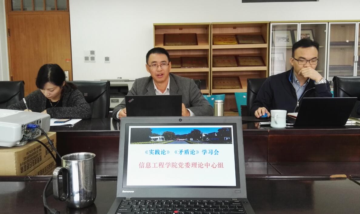 10月19日上午,我院党委理论学习中心组在A511会议室召开学习会,专题学习贯彻习近平总书记关于学哲学用哲学的重要指示精神。围绕学习研究《实践论》《矛盾论》等经典著作,立足工作实际和思想实际交流研讨。党委书记杨东勇主持学习,学院中心组成成员周晓、屠佳、张有兵、陈国定、冯远静、陈友良参加学习研讨。