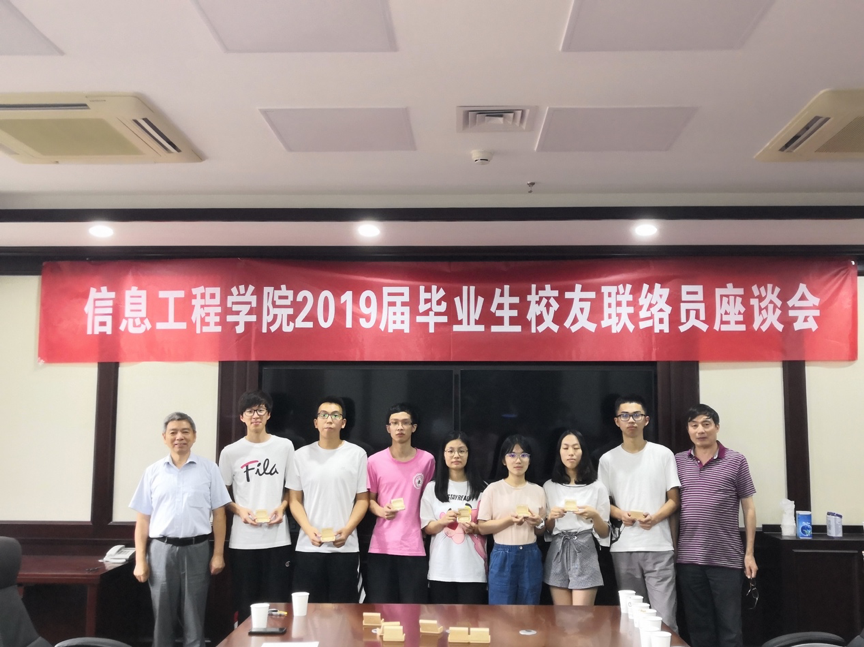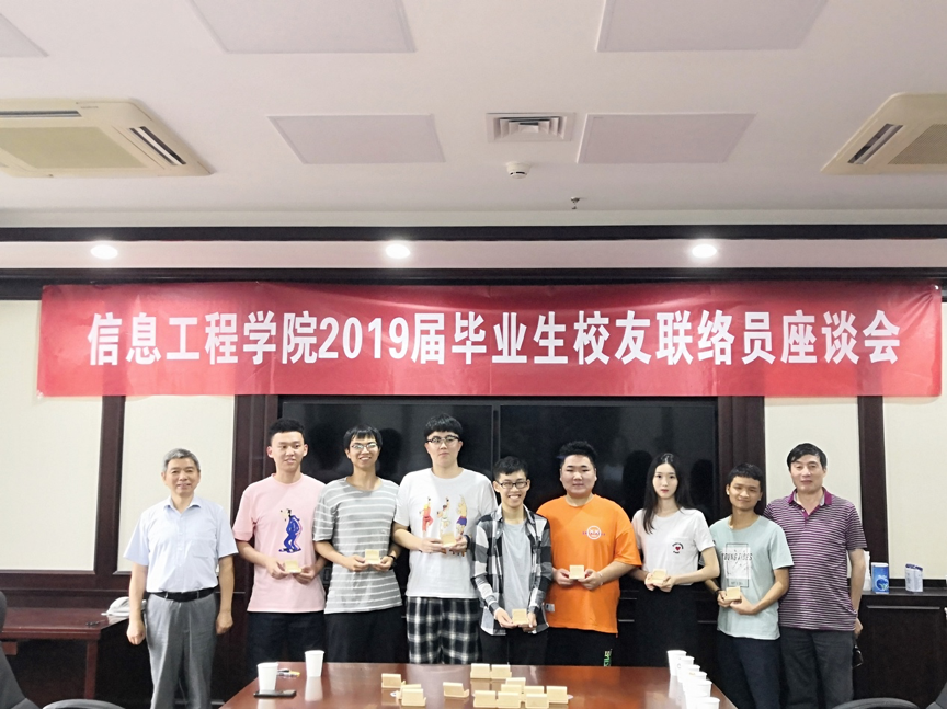 6月19日,学院2019届毕业生校友联络员座谈会在信A511举行。学院党委书记杨东勇、副书记屠佳、院长助理陈友良、学工办主任仲国民、2015级辅导员郭溦及2019届毕业生校友联络员参加座谈。座谈会由学院党委副书记屠佳主持。 座谈会上,陈友良首先简要介绍了信息学院的校友会建设与发展情况,强调了校友联络员的相关职责,鼓励同学们与工作地校友多多交流,积极加入校友组织,做好班级校友联络工作。校友联络员们逐一介绍了毕业后的就业去向,同时对学院校友工作的开展表示十分地支持。屠佳向即将毕业的同学们表示祝贺,同时希望同学们能牢记使命,主动成为学院与同学们之间的纽带,积极参与各地校友举办的活动。杨东勇代表学院向积极参与校友联络员工作的新一届校友表示感谢,同时希望同学们毕业后积极关注母校母院发展,为学校学院的发展建言献策,也欢迎毕业生常回母校看看。会上,杨东勇、屠佳、陈友良向联络员们赠送了学院准备的定制礼物,杨东勇与学生代表共同切祝福的蛋糕,祝愿2019届毕业生前程似锦。 校友联络员是学院与校友联络的纽带,信息学院目前已在北京、上海、杭州、宁波、温州、嘉兴等地建立了校友分会,各地校友会纷纷开展合作交流、文体赛事、经验分享等系列校友活动,信息校友情系母校母院,在学院已设立建龙、银江、中威、天宽、方正、鸿泉、张德鸣等各类基金共计1500余万元,用于支持母校母院人才培养的需求。学院每年聘任新一届校友联络员,目前已是第40届。