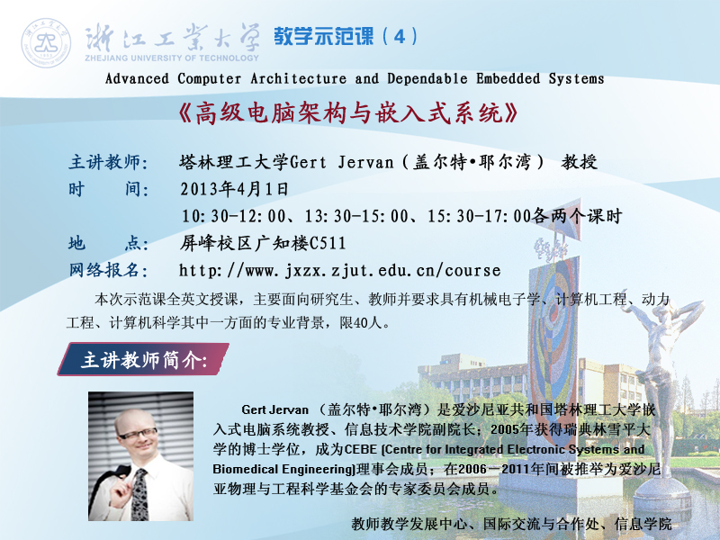 塔林理工大学教授来我院开展 “Advanced Computer Architecture and Dependable Embedded Systems”教学示范课的通知