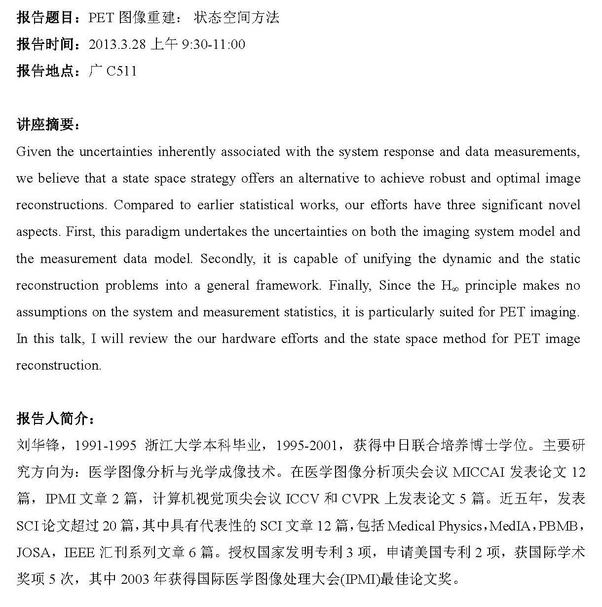 刘华锋教授学术报告预报