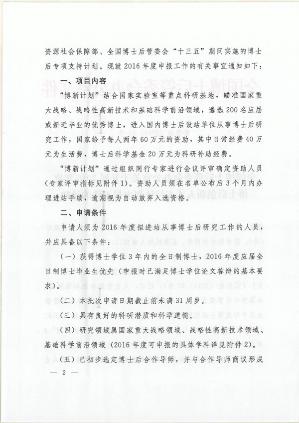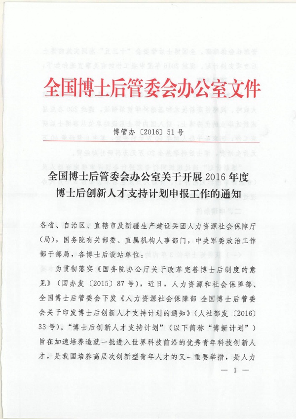 转发关于开展2016年度博士后创新人才支持计划申报工作的通知